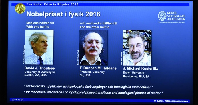 La mitad del premio, dotado con 8 millones de coronas suecas (934.000 dólares), es para David J. Thouless; nacido en 1934 en Bearsden, Escocia, y ahora profesor emérito de la Universidad de Washington, donde ha trabajado desde 1980.