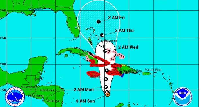 También se prevé que cause entre 25 y 50 centímetros de lluvia en el este de Jamaica, República Dominicana y el oriente de Cuba, “con posibles cantidades máximas aisladas de 25 pulgadas (64 centímetros)”, señaló el NHC.